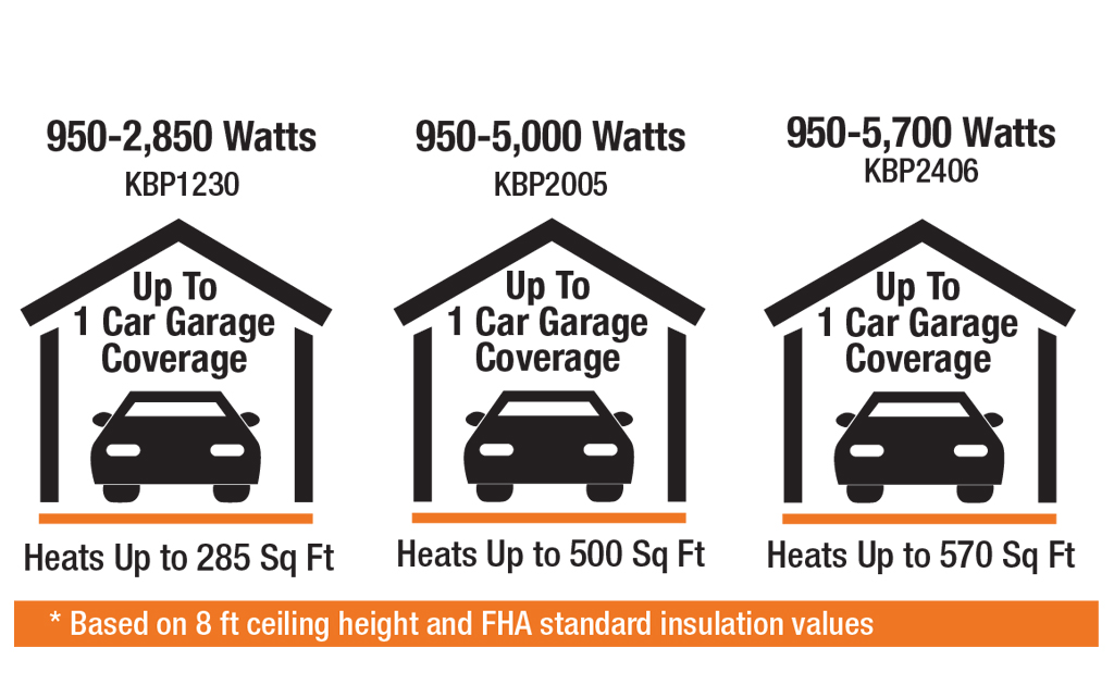 Contractor shall supply and install KBP ECO2S Series garage heaters manufactured by King Electrical Mfg. Company. Heaters shall be of the wattage and voltage as indicated on the plans.