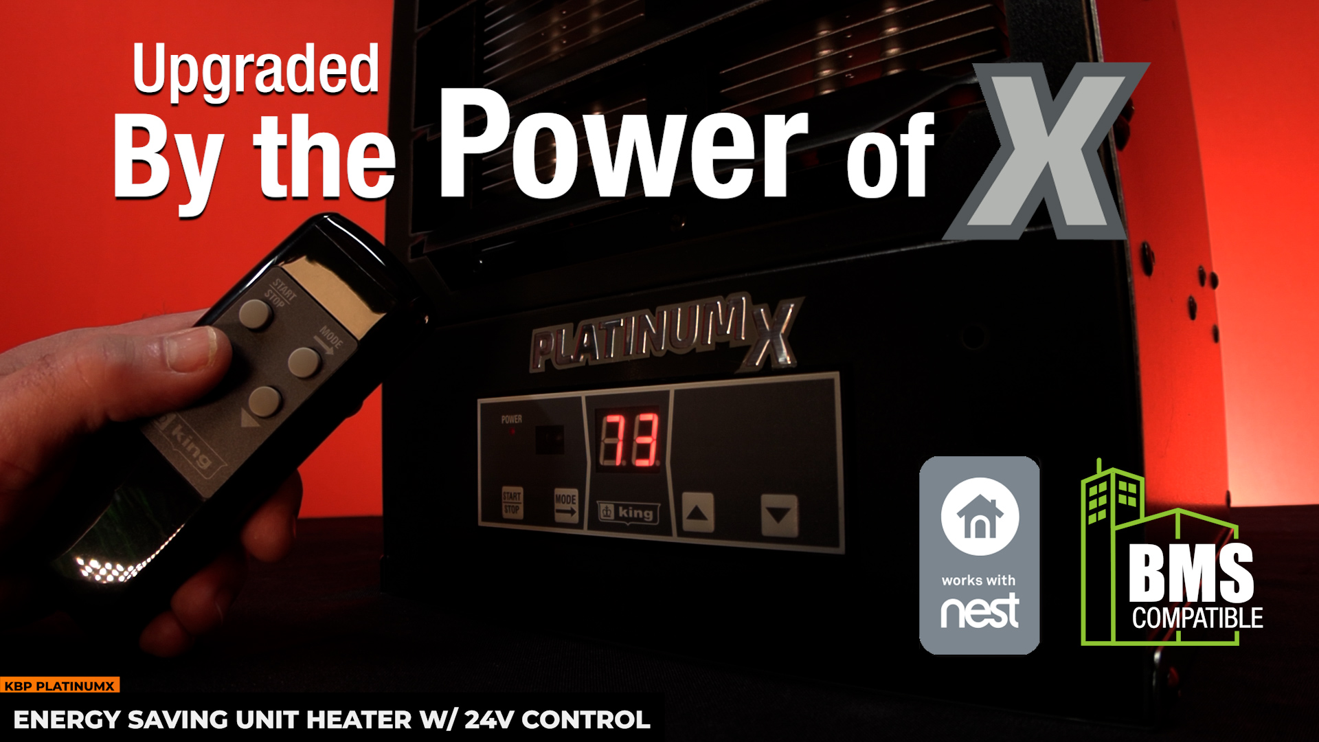 King’s KBP PlatinumX BMS series unit heaters are the most full-featured unit heaters on the market, with in-built electronic thermostat for +/- 1°F accuracy and remote control for simple operation. Comes standard with a provision for adding an optional 24V thermostat for remote temperature control, making it compatible with Nest Thermostats or Building Management System Integration. Combined with summer fan-only and thermostat timer modes, the KBP PlatinumX adapts to your needs year-round.